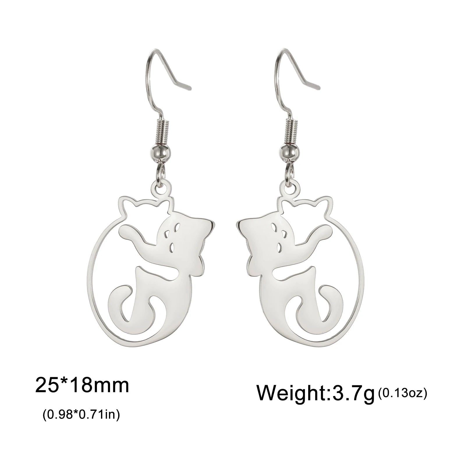 A tiny cuddle you can wear. These stainless-steel drop earrings sketch a kitten in a gentle hug—lightweight, skin-friendly, and gift-ready. A subtle everyday pair for cat lovers who prefer quiet, heartfelt jewellery.