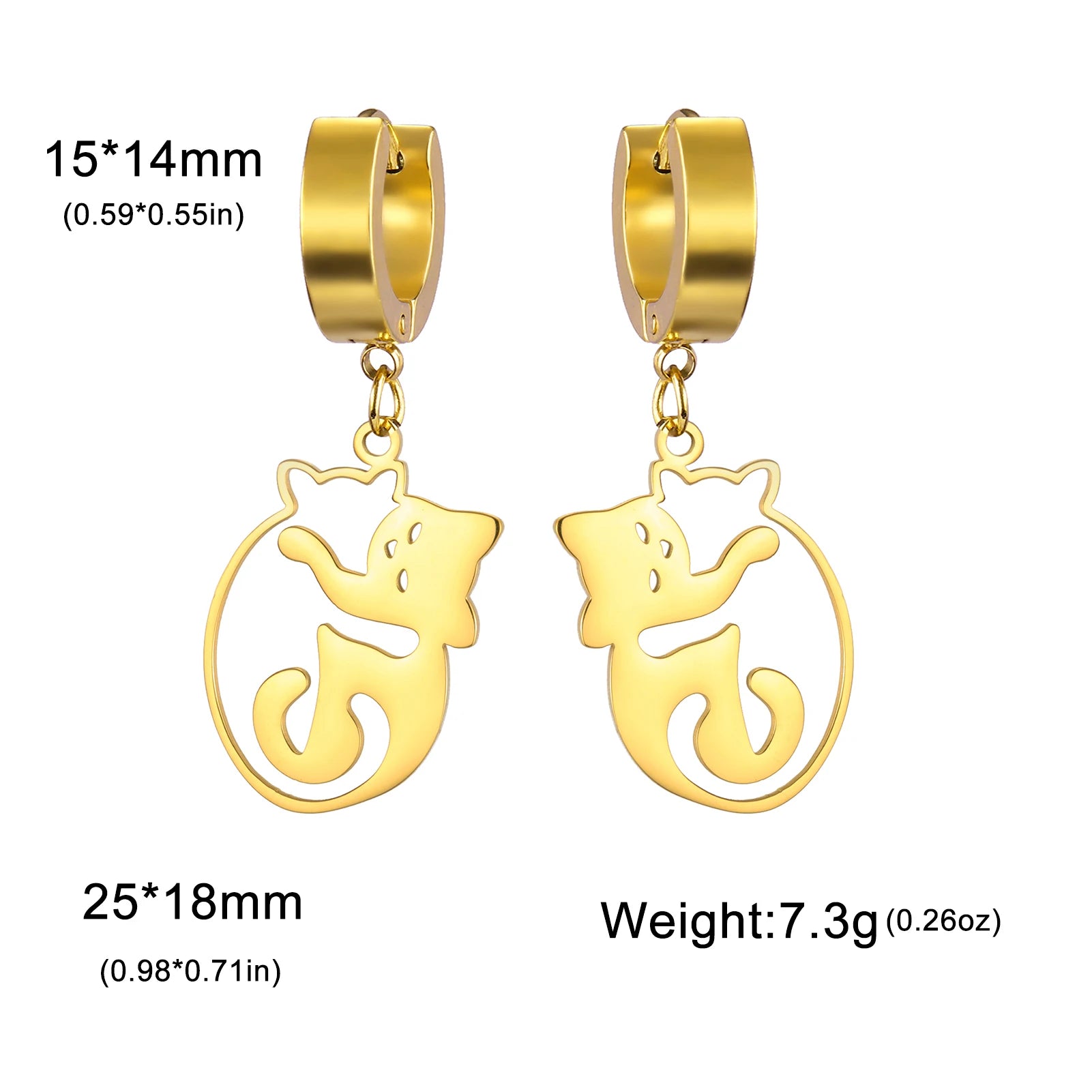 Cat Hug Drop Earrings — Stainless Steel